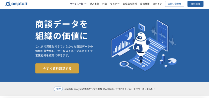 人事評価クラウドあしたのクラウドを提供する株式会社あしたのチームは、amptalkを導入し、商談内容の可視化に取り組みました。導入前は商談内容がブラックボックス化しており、成約率向上の打ち手が見えない状態でした。