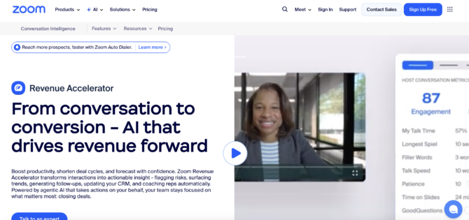 商談のどの場面で顧客の反応が変化したかを検出でき、具体的な改善ポイントが明確になります。チーム内でのナレッジ共有機能も充実しており、ベストプラクティスを組織全体に展開しやすい設計です。