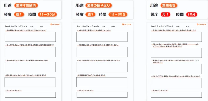 1on1ミーティングシートは、1on1を実施する際に使うフォーマットです。