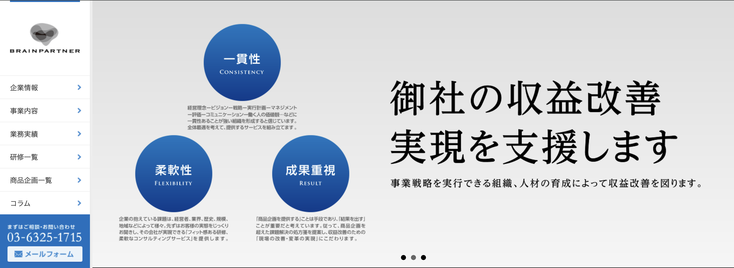 実績: サッポロビール株式会社(管理職研修)、株式会社LIXIL(次世代リーダー/人材育成体系)など