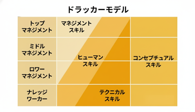 階層ごとに「テクニカルスキル」「ヒューマンスキル」「コンセプチュアルスキル」の優先度が示されているからです。
