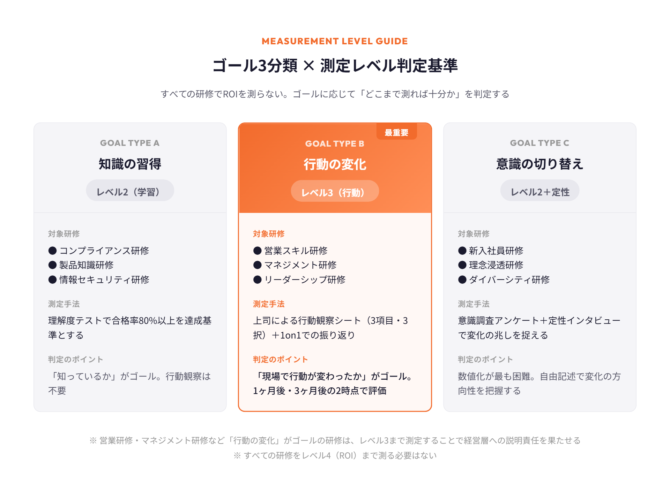 すべての研修でROIを測らない|ゴール3分類×測定レベル判定基準