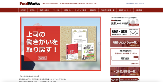 経営層から現場社員まで、あらゆる階層を包括的にサポートできる体制を持っています。 研修だけでなく、組織改革、業務改善、生産性向上、人事制度設計、働き方改革など、多様な経営課題に対して、理論と実践を融合したトータルなソリューション支援を行うことができる点も大きな強みです。