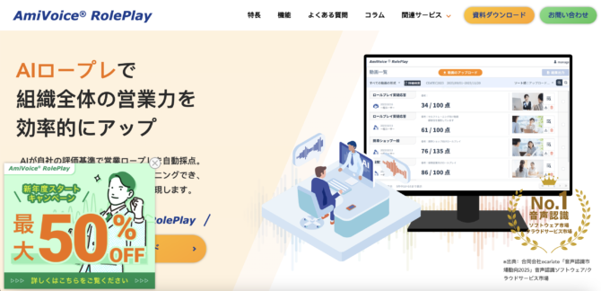 - AIロープレの価値: マネージャーの工数を割かずに、営業担当者が「質の高い反復練習」を行えます。AIがヒアリングの漏れやトークの癖を数値化(スコアリング)するため、客観的な改善が可能です。