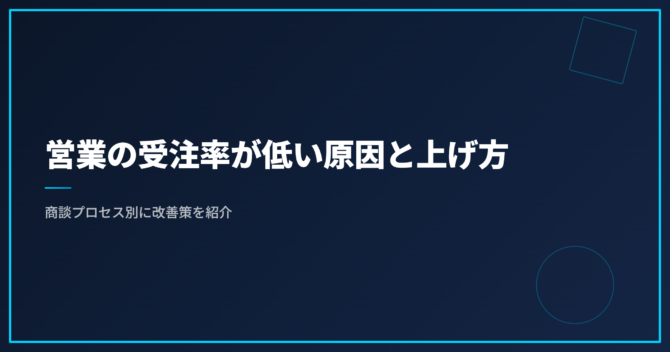 受注率を改善するには、営業プロセスをリード獲得・ヒアリング・提案・クロージングの4フェーズに分解し、どこにボトルネックがあるかを特定した上で手を打つことが最も確実です。フェーズごとに求められるスキルと改善策はまったく異なります。