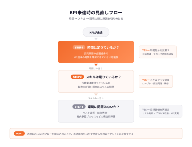 KPI未達時の見直しフロー|時間・スキル・環境の3軸で特定する