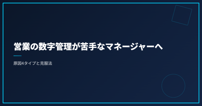 営業マネージャーが数字管理を苦手に感じる原因は「設計・分解・伝達・モニタリング」の4タイプに分かれます。プレイヤー時代の数字力とマネージャーの数字力は根本的に別のスキルであり、自分の苦手タイプを特定してタイプ別に克服することが最短ルートです。
