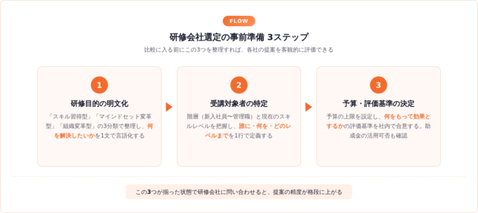 研修会社を比較する前に整理すべき3つの前提条件
