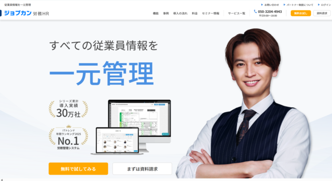 ジョブカン労務HRは、労務管理全般をカバーするシステムで、無料プラン(従業員5名まで)が用意されています。ただし無料プランではデータ保持期間が30日間に限定され、チャットサポートも利用不可のため、評価運用には有料プラン(30日間トライアルあり)の検討が必要です。